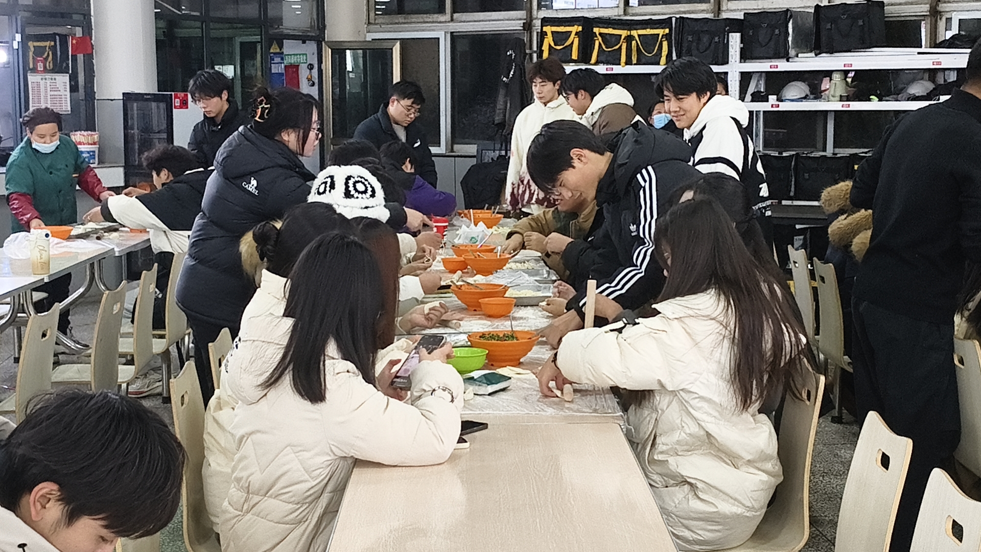 活动期间,新生辅导员主动参与,耐心指导同学们如何包饺子,同学们从和面、擀皮、放馅开始,一步步学习包饺子的技巧。班委们也积极发挥服务精神,为同学们提供所需的材料和工具,确保活动顺利进行。