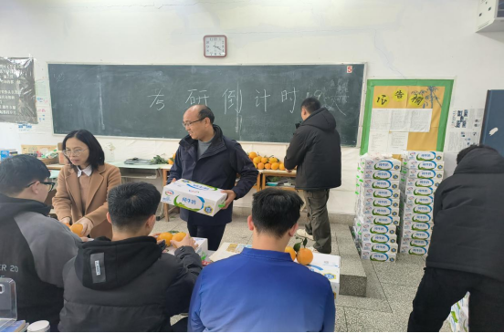 樊昀瑛和王朝勇代表公司给考研员工每人发了一提牛奶、橙子,寓意着员工在全力奋战的同时注意营养的补给和“心想事‘橙’”。最后,员工们集体感谢公司的暖心慰问,并互相鼓励考研成功上岸。